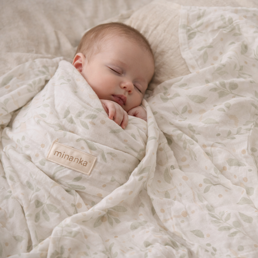 Bebeğinizin hassas cildi için özenle tasarlanan Minanka müslin örtü, hafif ve nefes alabilen yapısıyla yumuşak bir sarılış sunar. Pamuk dokusu sayesinde cildi tahriş etmez ve gün boyu konfor sağlar.